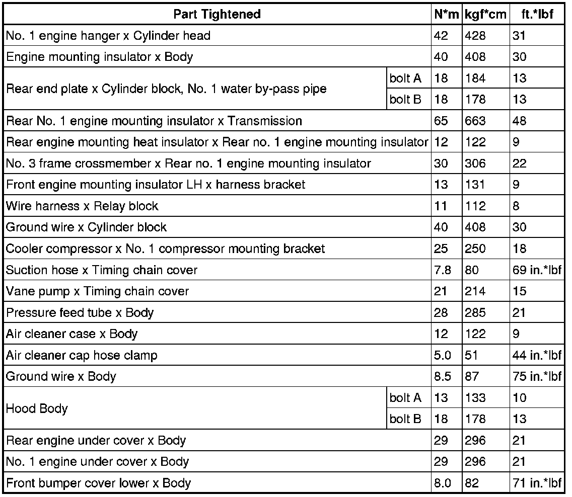 SPECIFICATIONS: 2TR-FE ENGINE MECHANICAL: TORQUE SPECIFICATIONS