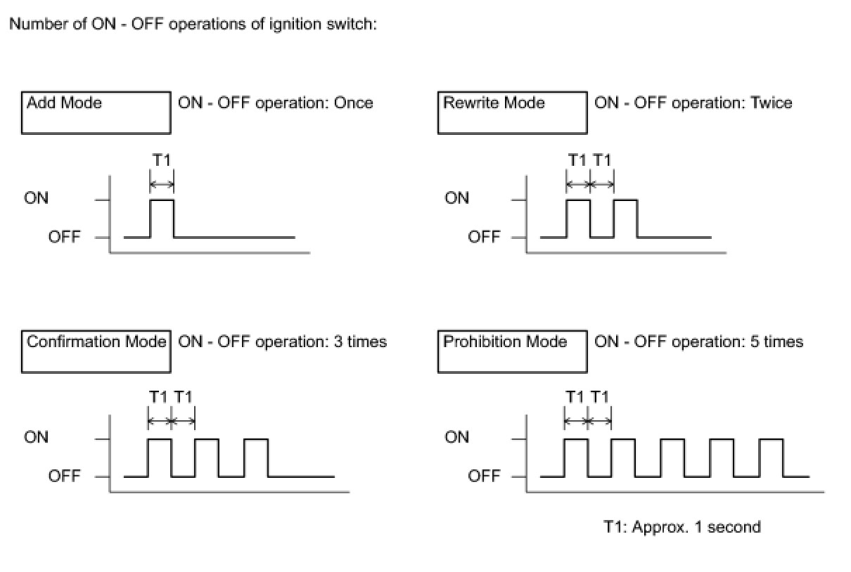 (b) Insert and remove the key into / from the ignition key cylinder twice (Insert -> Remove ->Insert -> Remove) within 5 seconds.