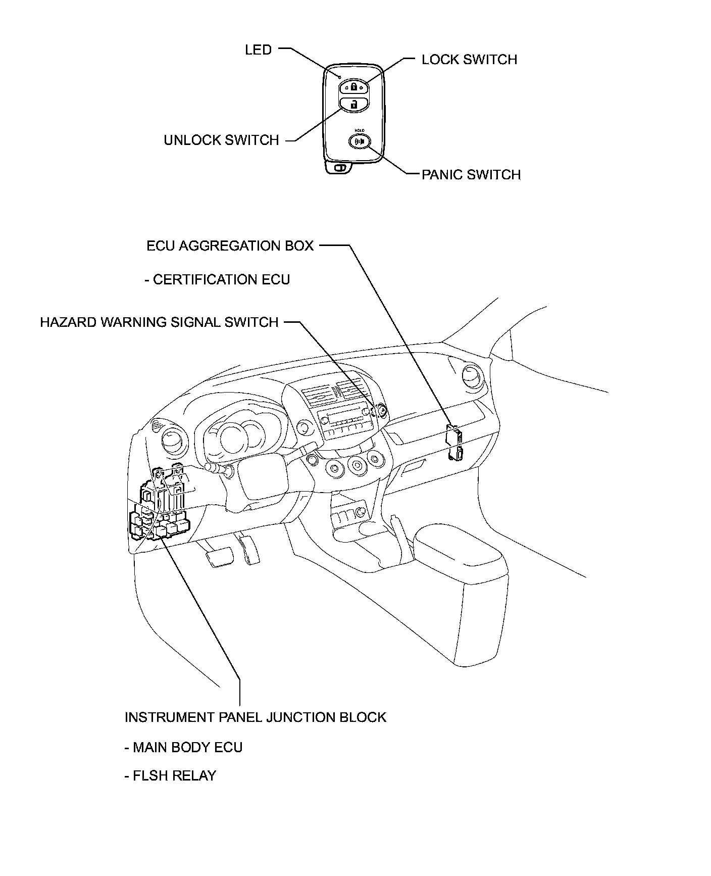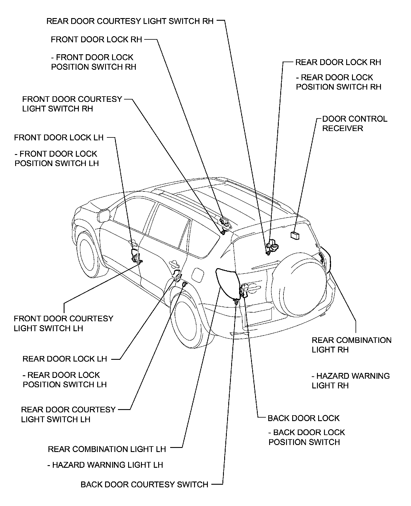 DOOR LOCK: WIRELESS DOOR LOCK CONTROL SYSTEM (w/ Smart Key System): PARTS LOCATION