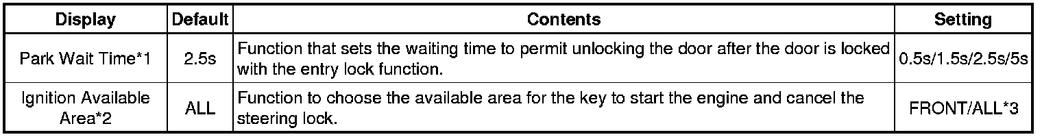 DOOR LOCK: SMART KEY SYSTEM: CUSTOMIZE PARAMETERS