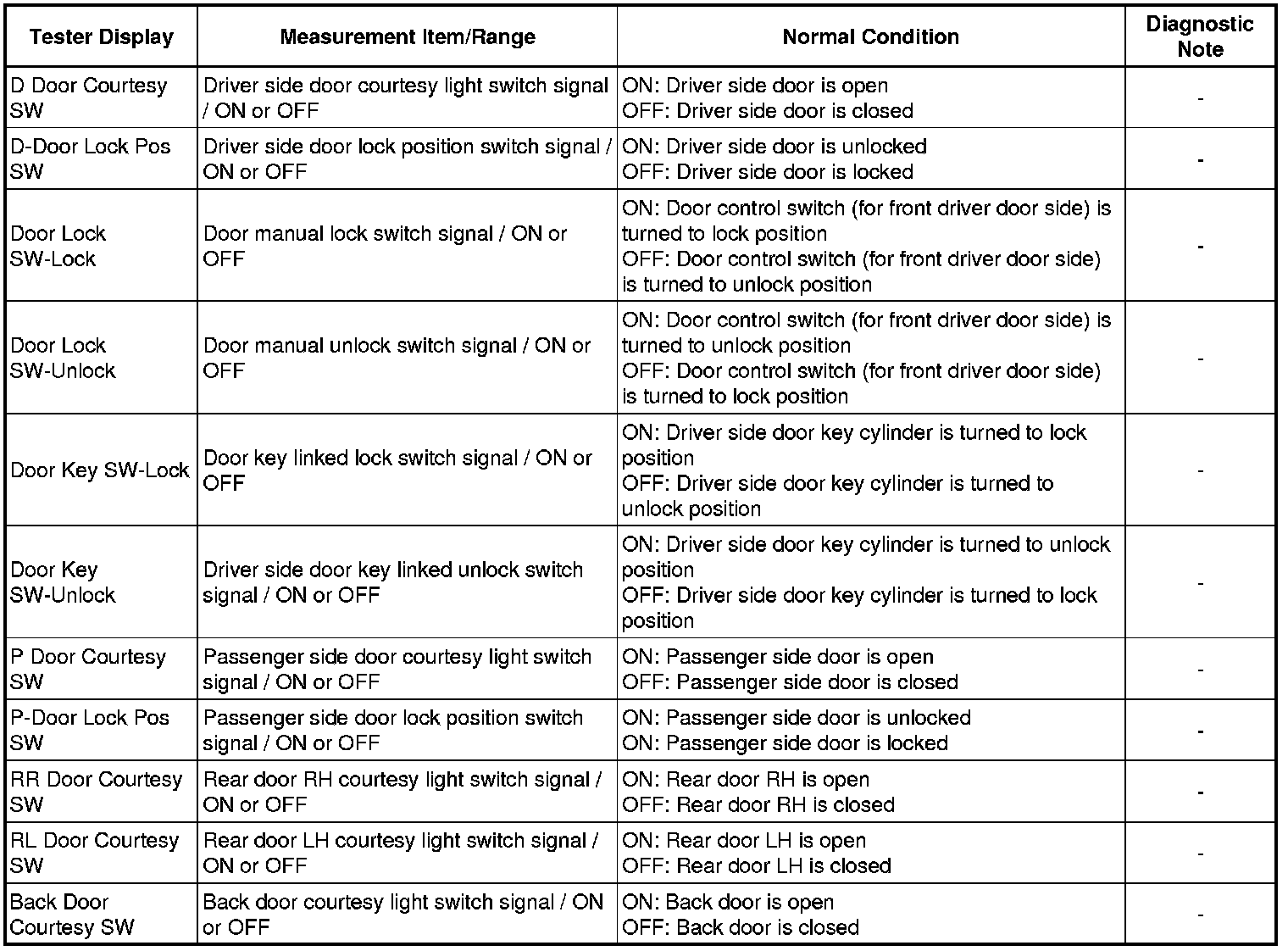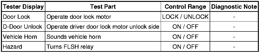DOOR LOCK: WIRELESS DOOR LOCK CONTROL SYSTEM (w/ Smart Key System): DATA LIST / ACTIVE TEST