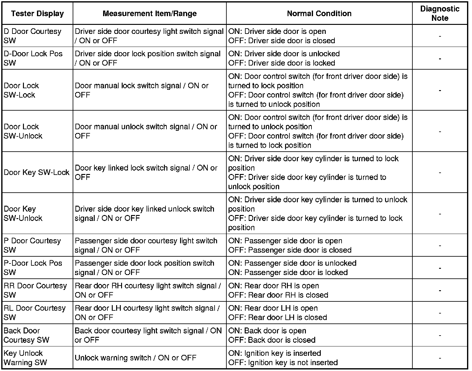 DOOR LOCK: WIRELESS DOOR LOCK CONTROL SYSTEM (w/o Smart Key System): DATA LIST / ACTIVE TEST