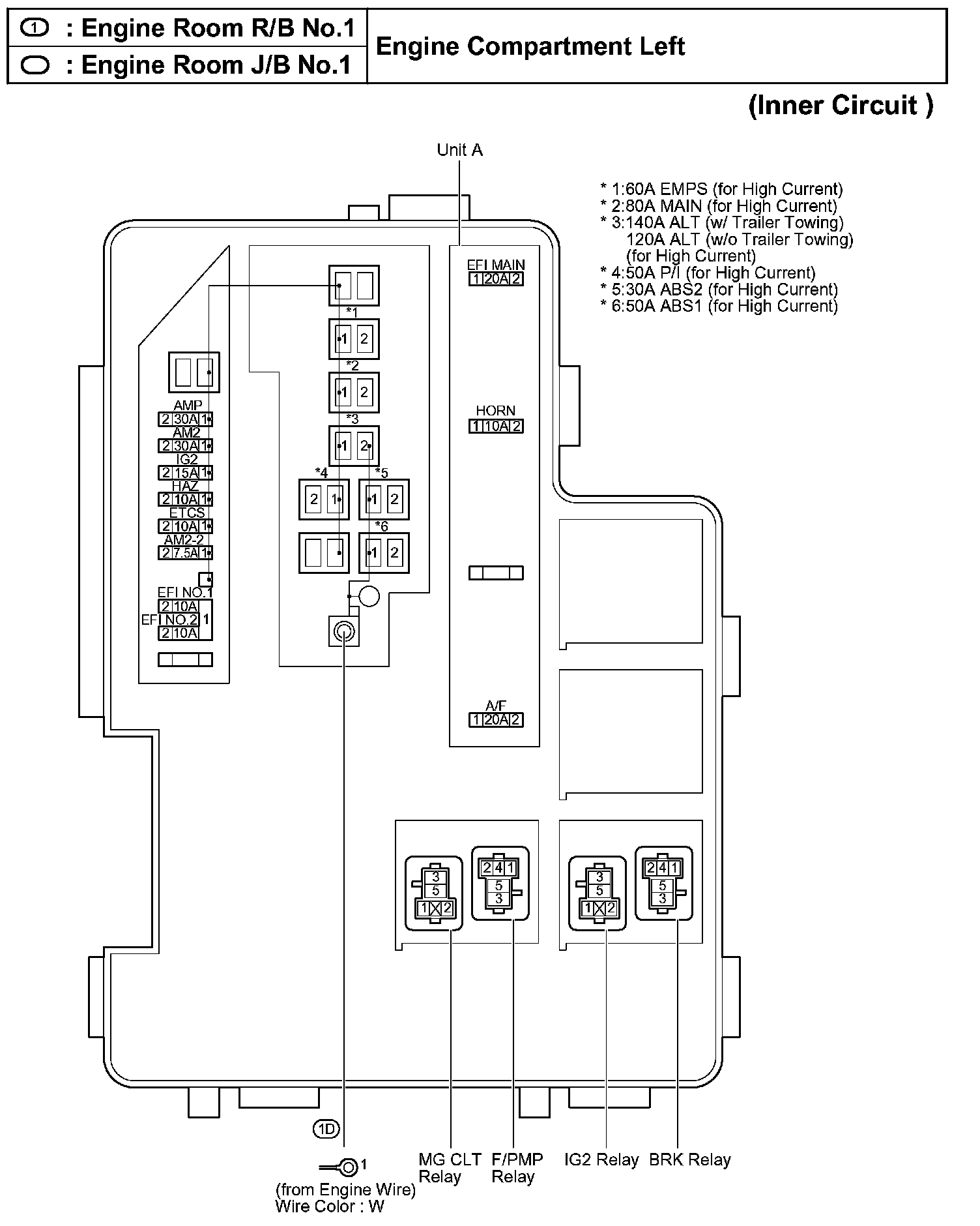 Engine Room R/B No.1, J/B No.1 - Engine Compartment Left: