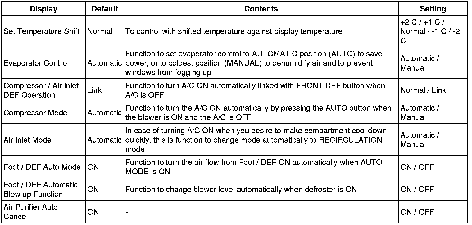 AIR CONDITIONING: AIR CONDITIONING SYSTEM (for Automatic Air Conditioning System): CUSTOMIZE PARAMETERS