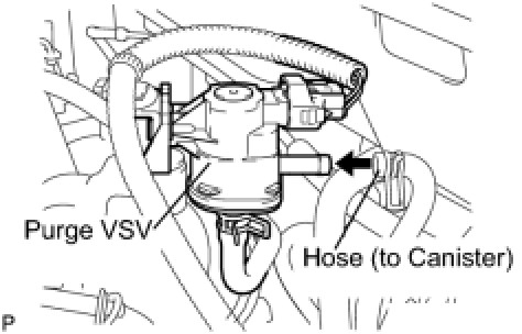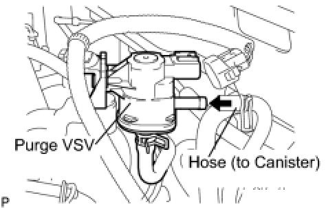 (a) Disconnect the hose (connected to the intake manifold) from the purge VSV.