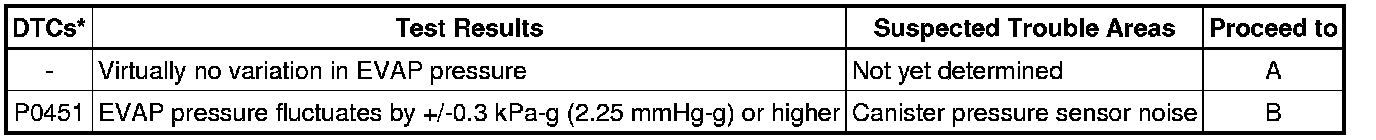 If any EVAP system DTCs are output, the malfunctioning area can be determined using the table below.
