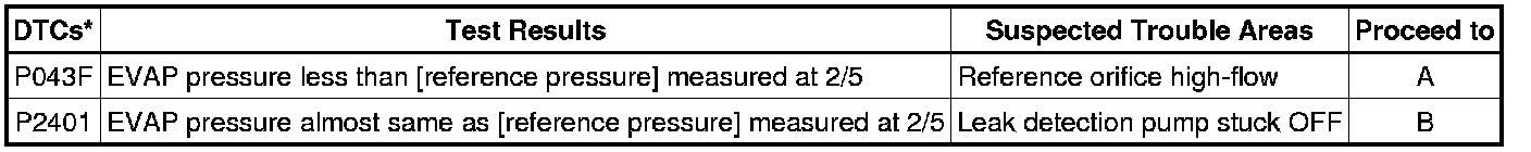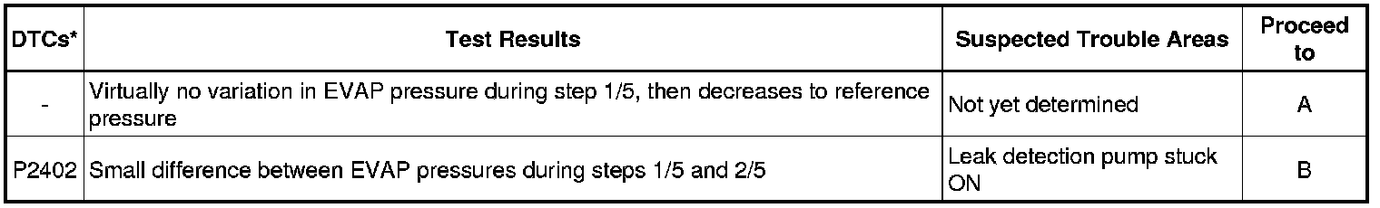 If the reference pressure difference between the first and second checks is more than the specification, all the DTCs relating to the reference pressure (P043E, P043F, P2401, P2402 and P2419) are stored.