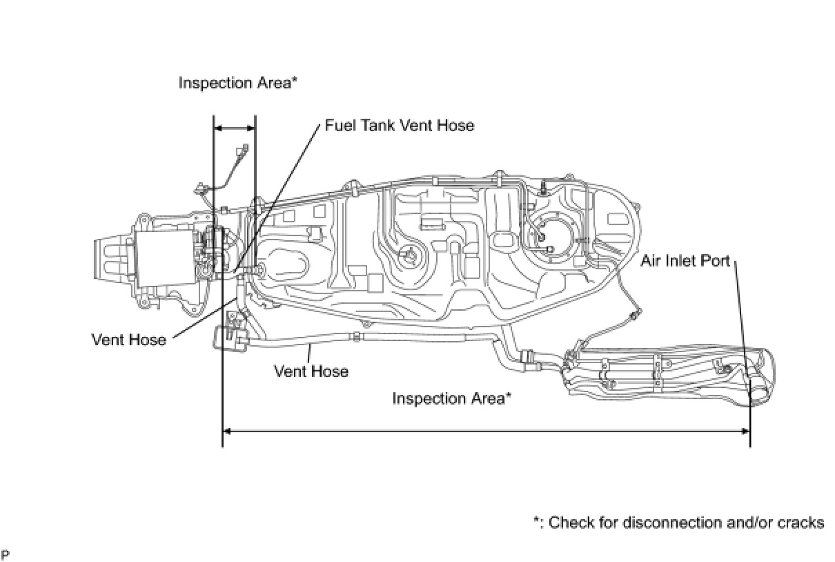 Disconnect the hose between the canister and fuel tank from the canister. Block the canister side and conduct an inspection. In this way, the fuel tank can be excluded as an area suspected of causing fuel leaks.