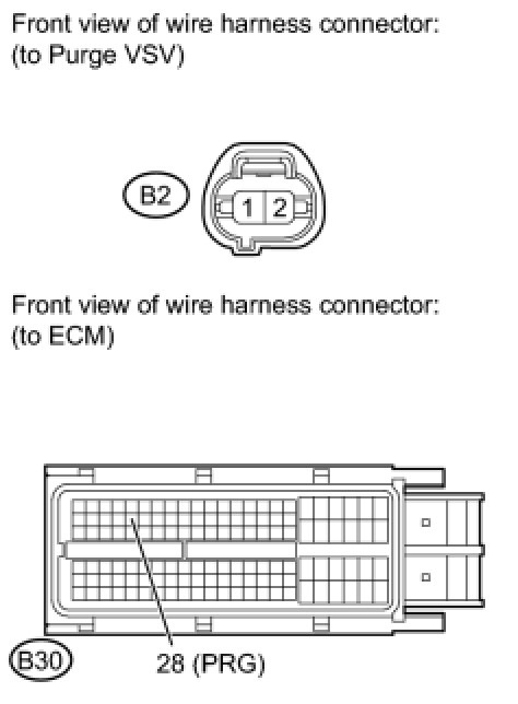 (a) Disconnect the ECM connector and the purge VSV connector.