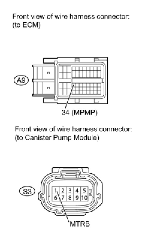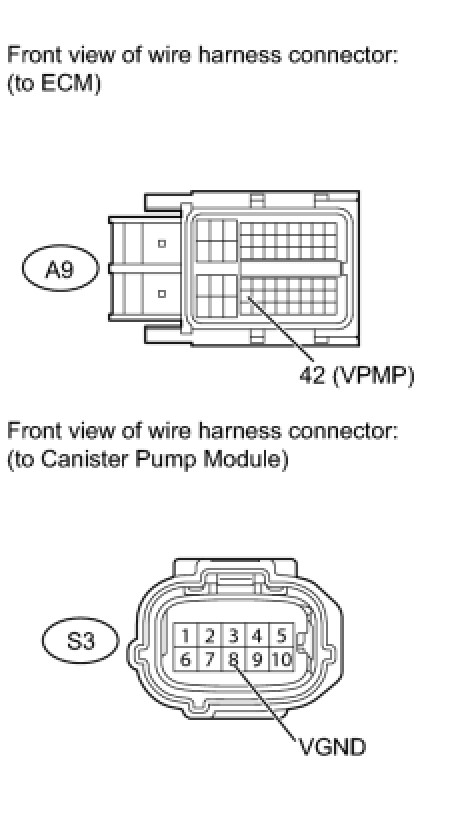 B -- CHECK HARNESS AND CONNECTOR (ECM - CANISTER PUMP MODULE)