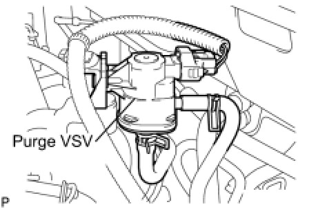 (a) Disconnect the connector and hoses from the purge VSV.