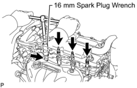 (a) Using a 16 mm spark plug wrench, install the 4 spark plugs.