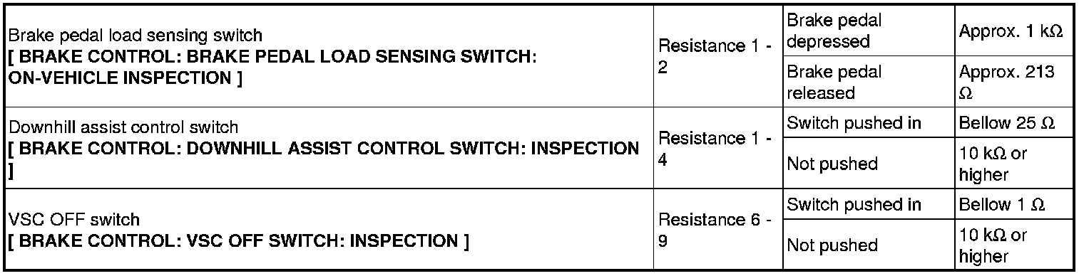 SERVICE SPECIFICATIONS: BRAKE CONTROL: SERVICE DATA