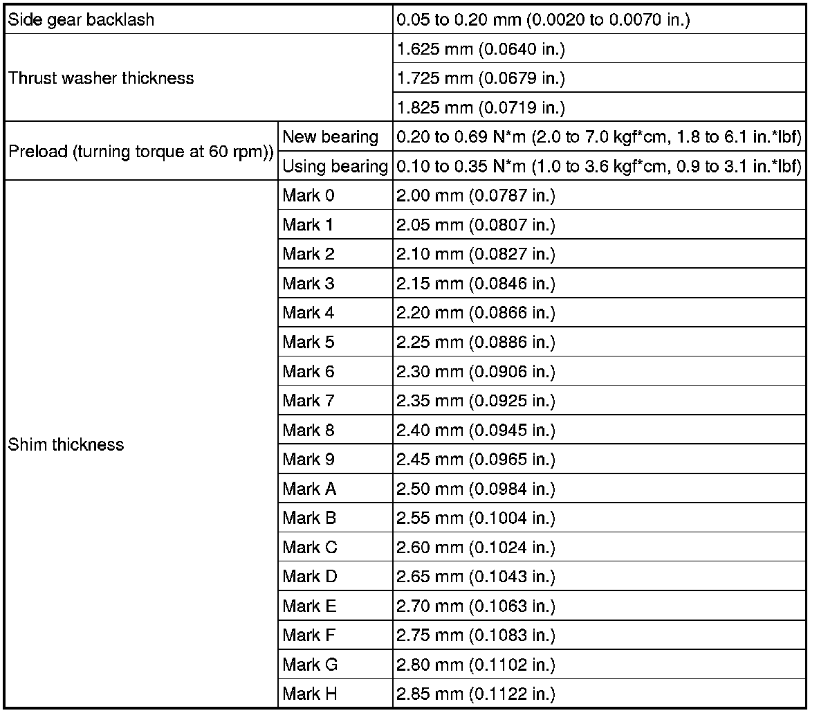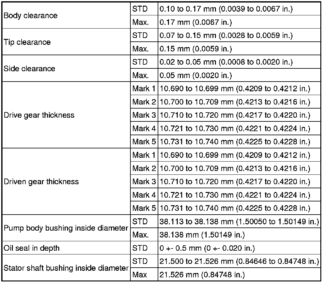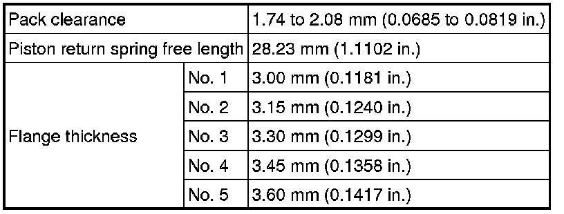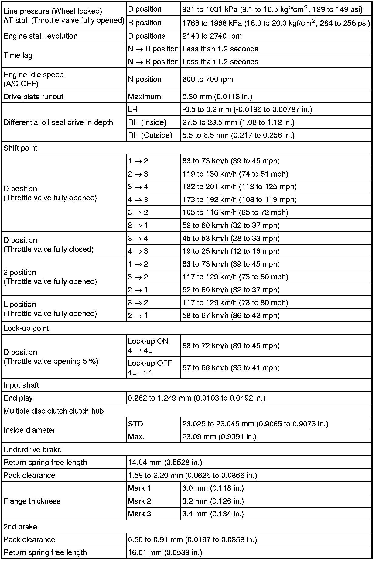 SERVICE SPECIFICATIONS: U140F AUTOMATIC TRANSAXLE: SERVICE DATA