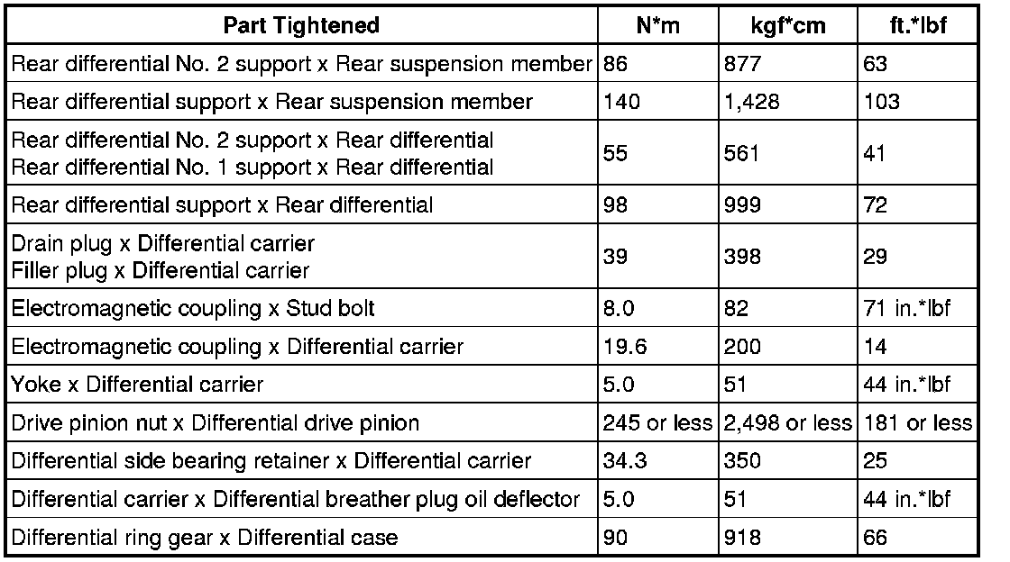 SERVICE SPECIFICATIONS: DIFFERENTIAL: TORQUE SPECIFICATIONS
