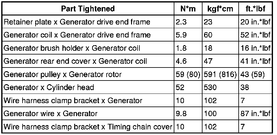 SERVICE SPECIFICATIONS: 2AR-FE CHARGING: TORQUE SPECIFICATIONS
