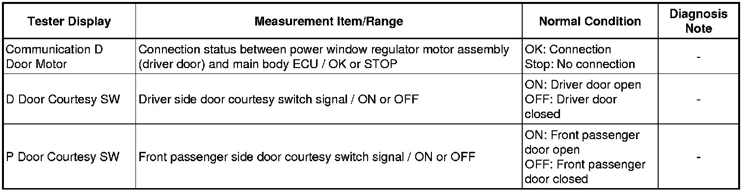 WINDSHIELD / WINDOWGLASS: POWER WINDOW CONTROL SYSTEM: DATA LIST / ACTIVE TEST