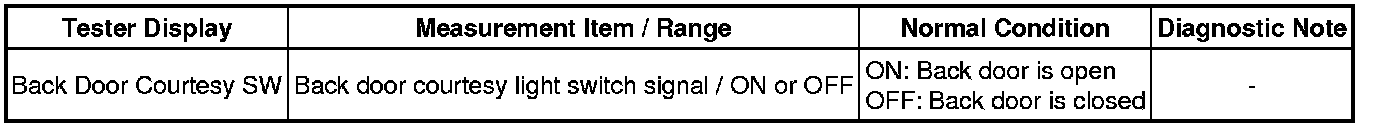 (a) Check the Data List for proper functioning of the back door courtesy light switch.