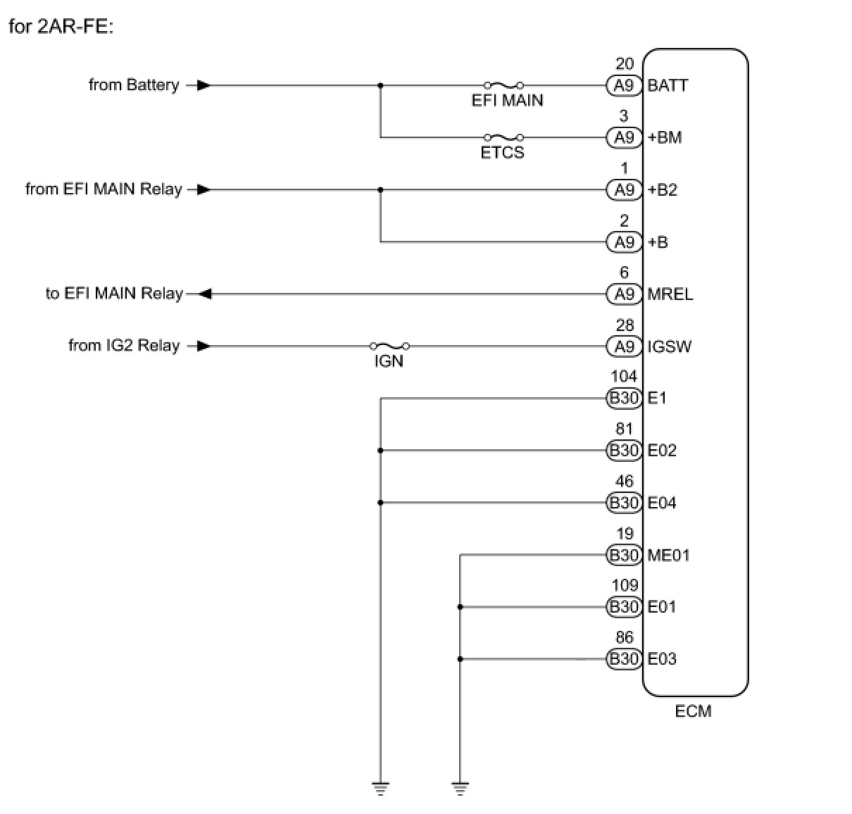 1. CHECK HARNESS AND CONNECTOR (ECM - BATTERY AND BODY GROUND)