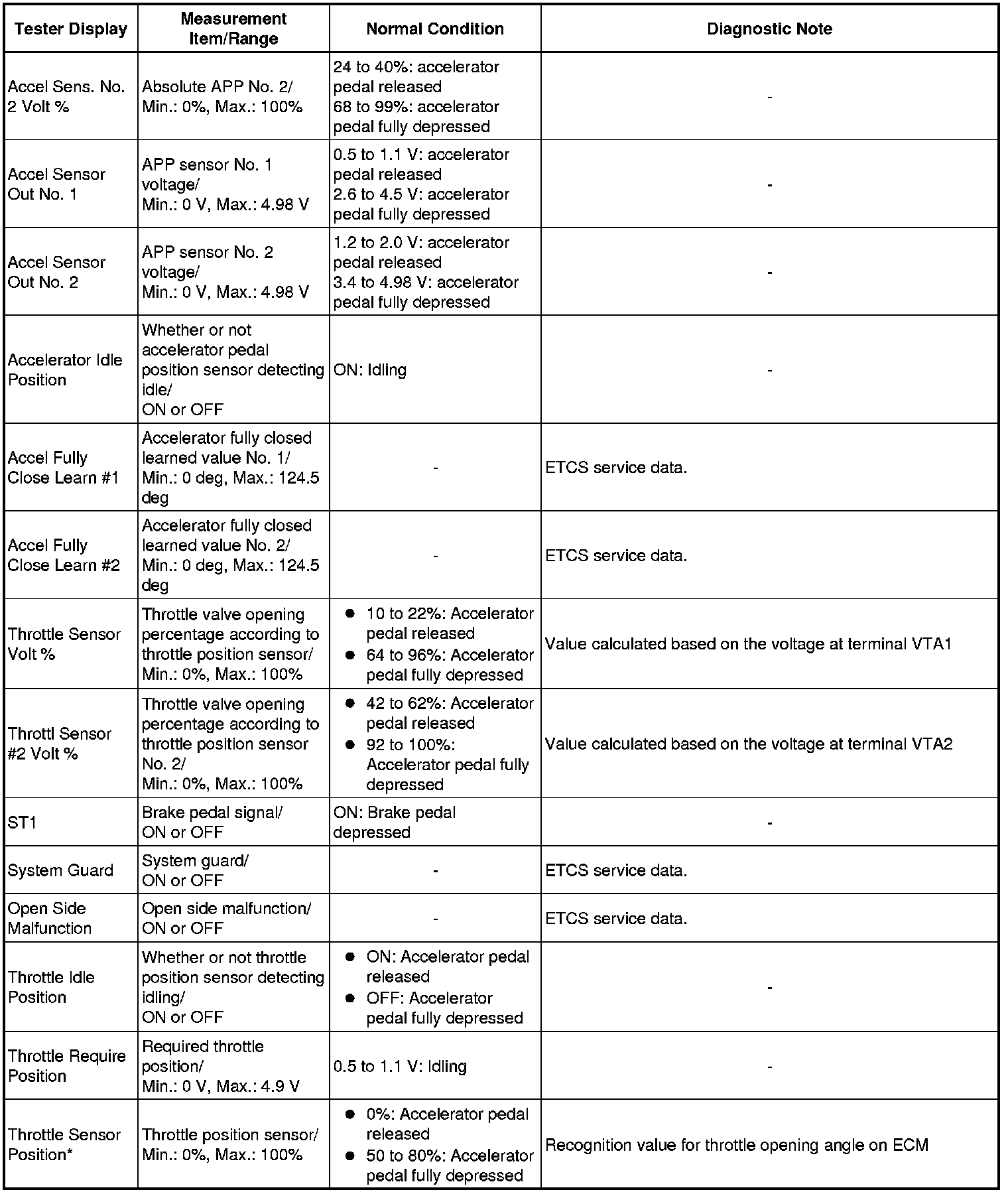 * *: Excluding throttle valve opening percentage due to Idle Speed Control (ISC).