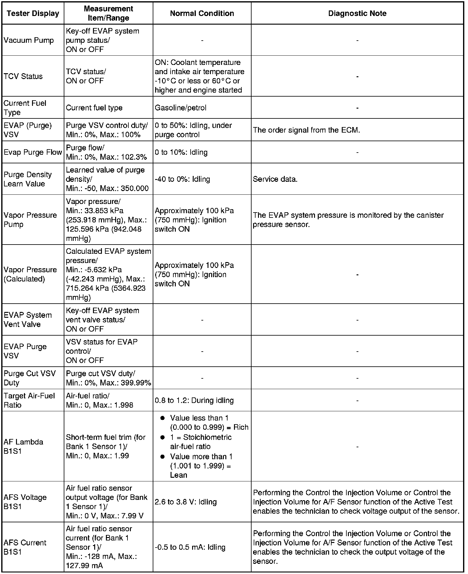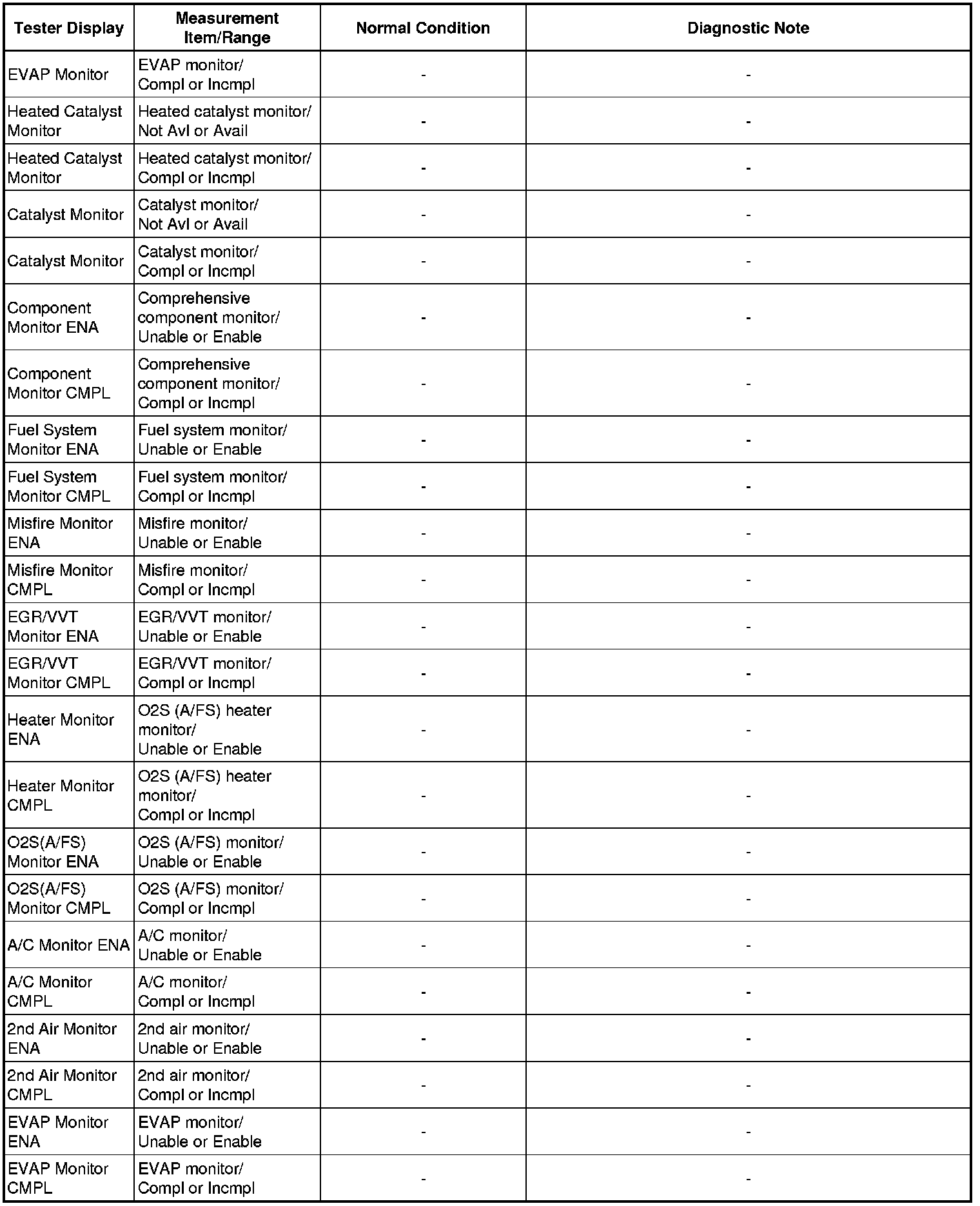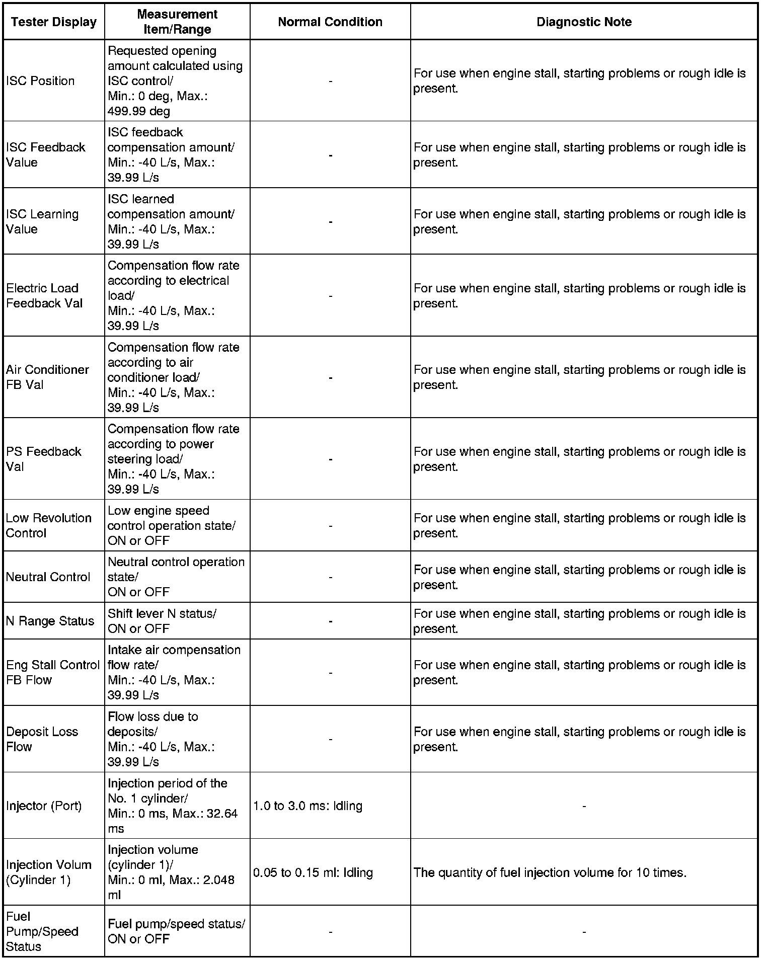 * Normal Condition: If no idling conditions are specified, make sure the shift lever is in N or P, and the A/C switch and all accessory switches are off.