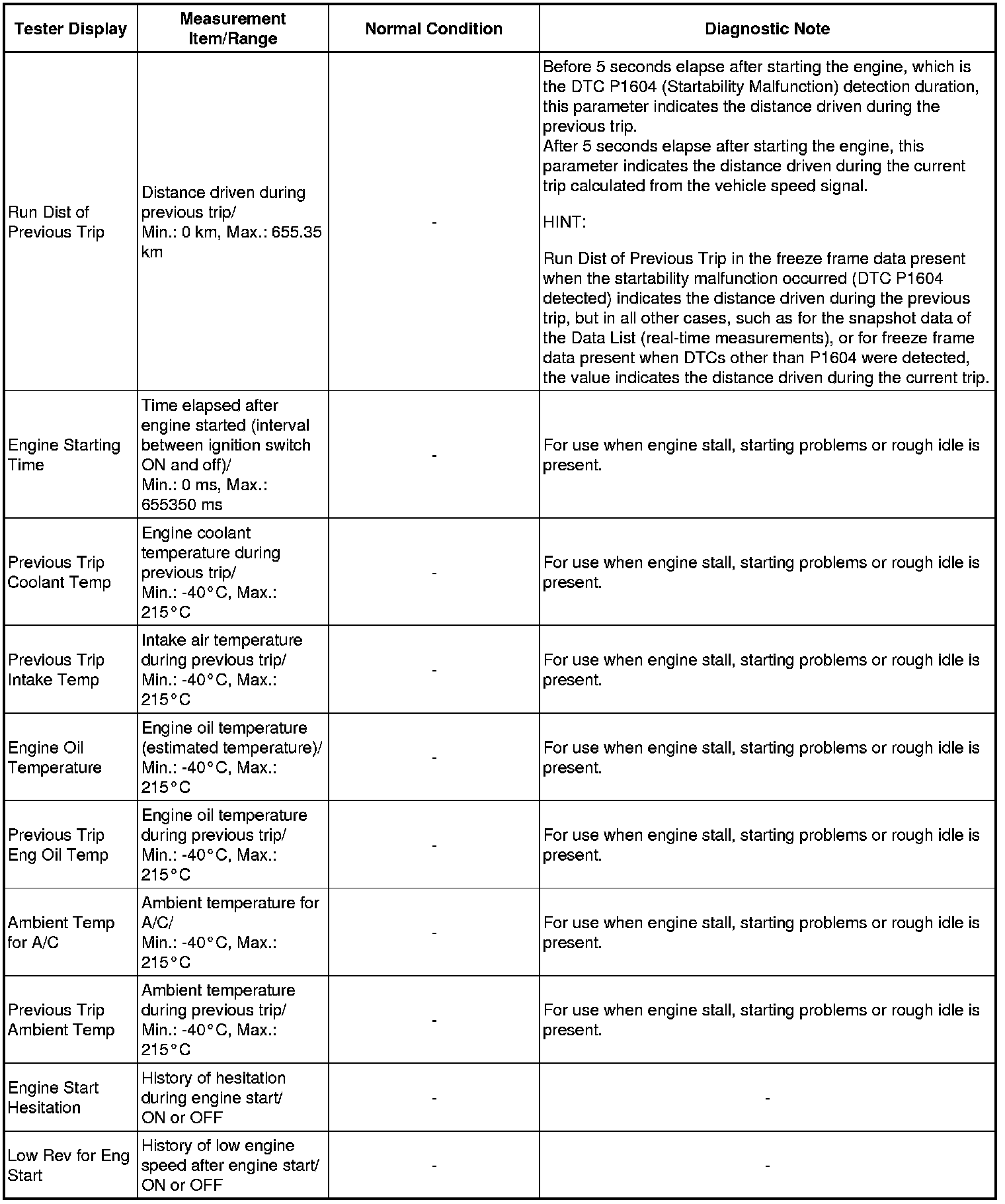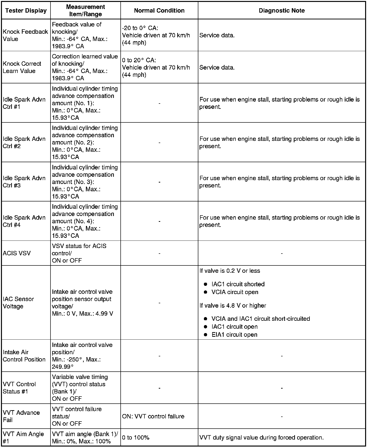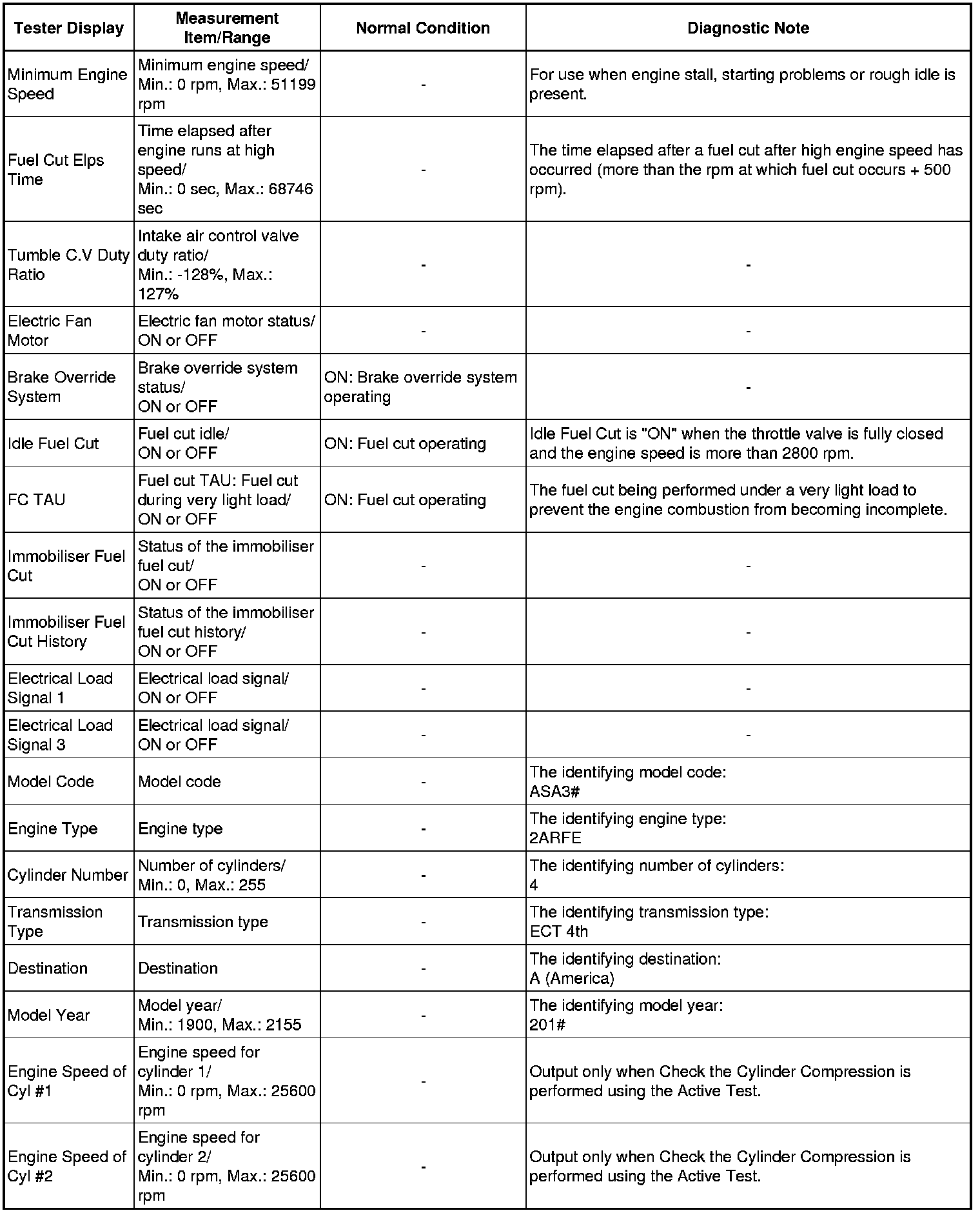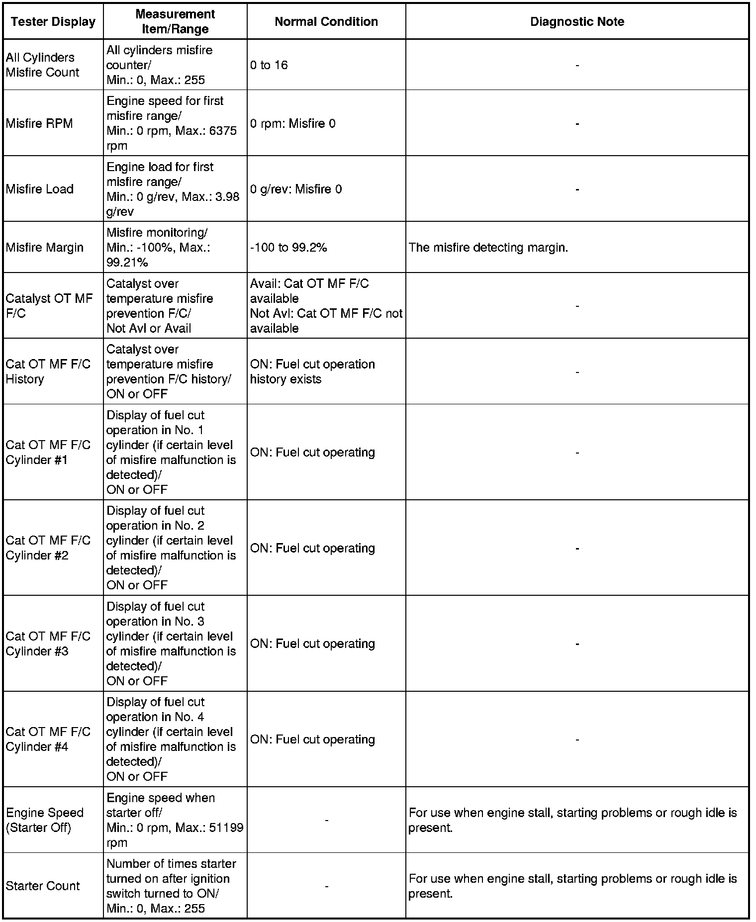 *2: When cranking the engine, each cylinder measures the engine speed.