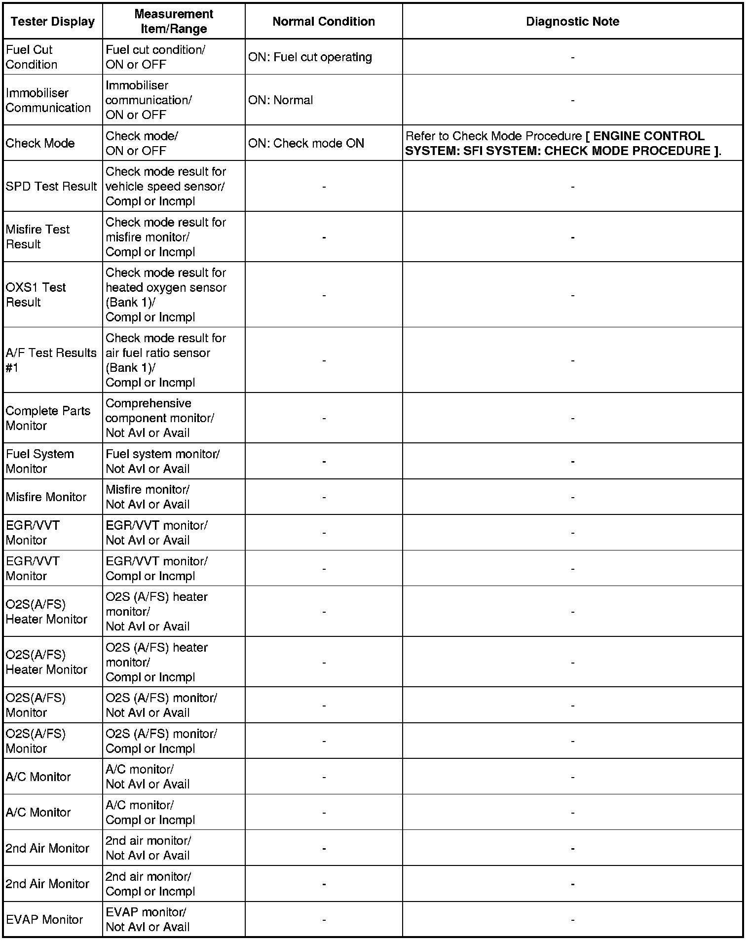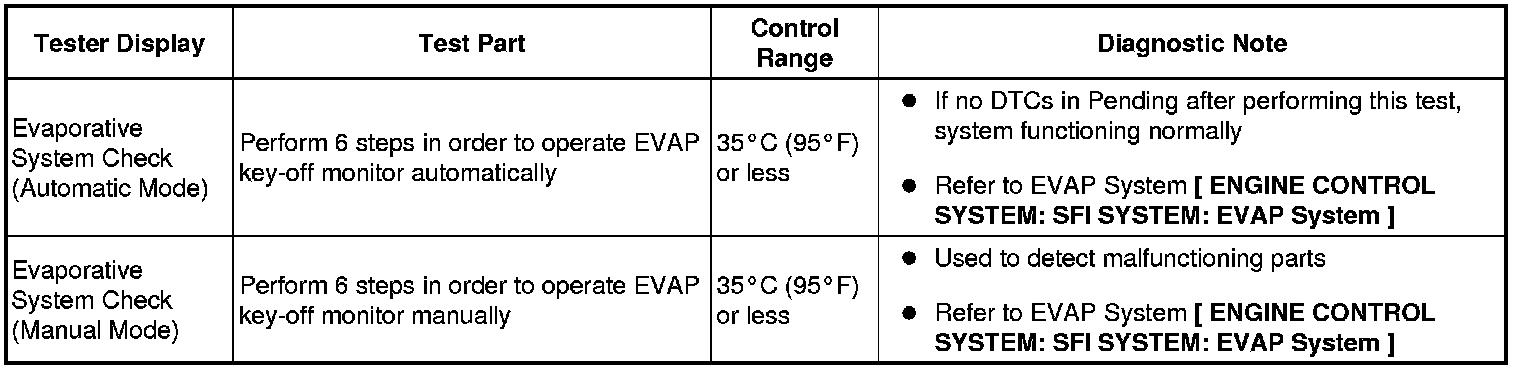 (e) Perform the System Check by referring to the table below.