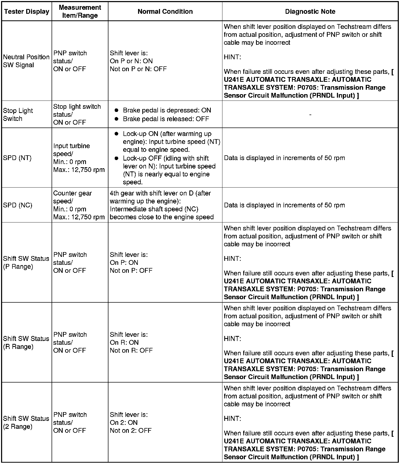 U241E AUTOMATIC TRANSAXLE: AUTOMATIC TRANSAXLE SYSTEM: DATA LIST / ACTIVE TEST