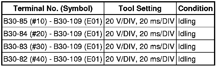 If the waveform is not similar to the illustration, check the waveform again after idling for 10 minutes or more.