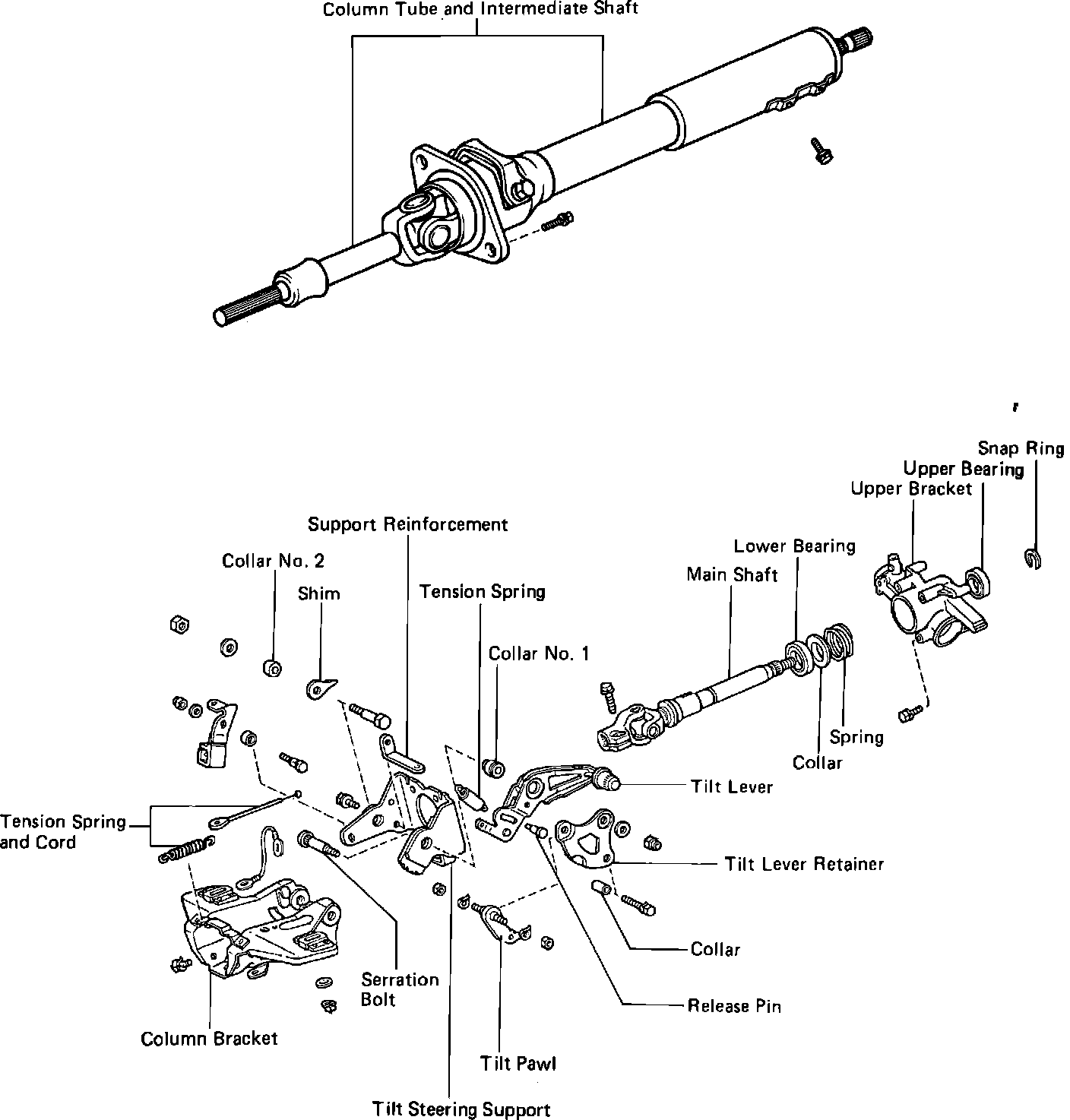 Fig. 4 Exploded view of steering column. 1984-85 Celica & 1984-86 early models Supra: