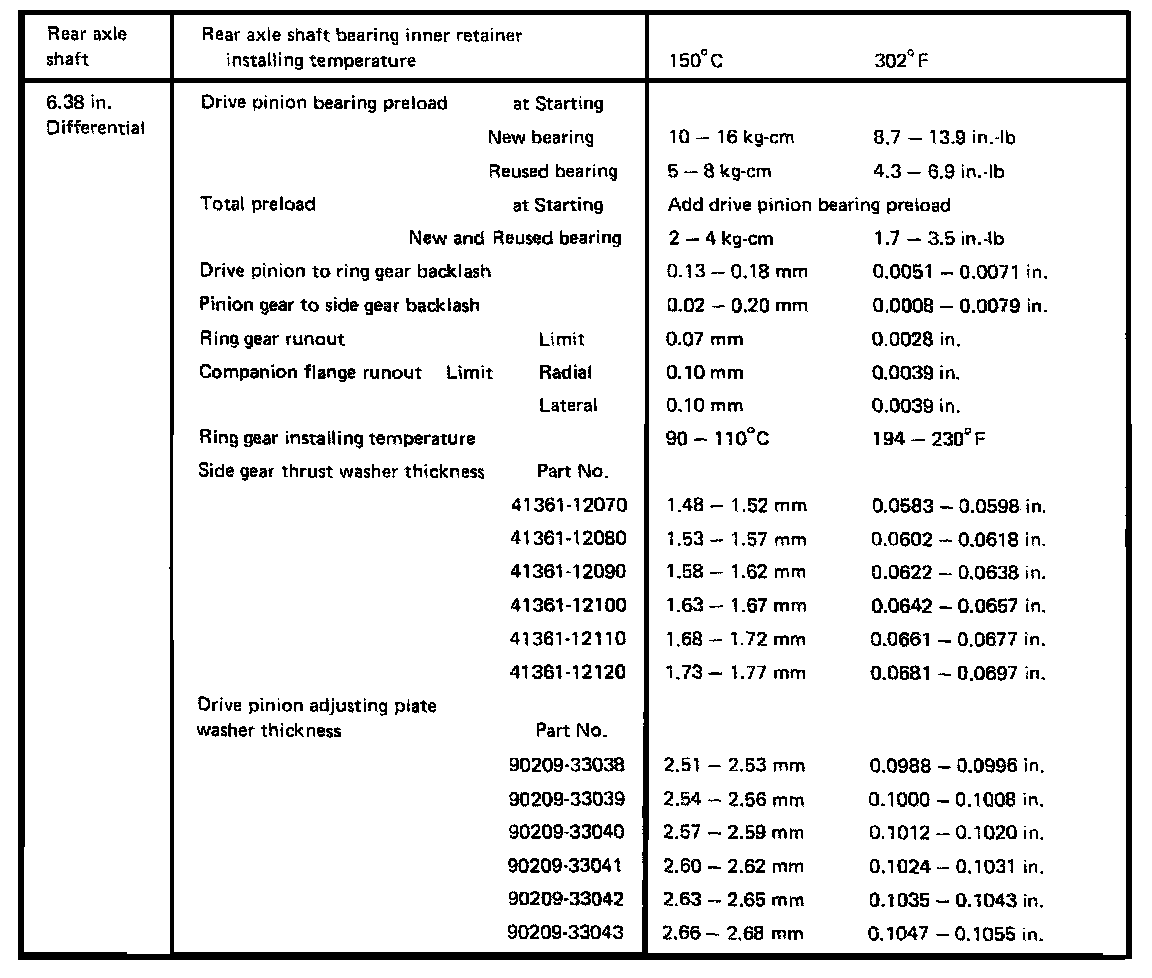 6.38 Inch Differential, Gear Backlash/Drive Pinion:
