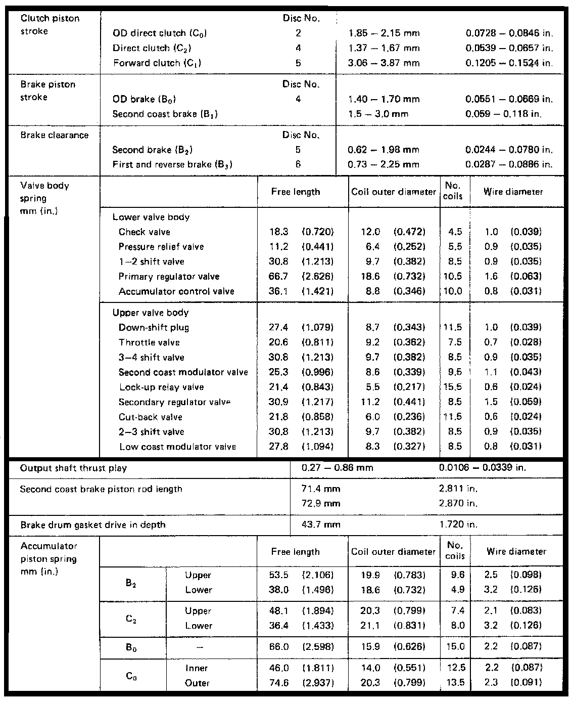 A340E 3-spd O/D A/T, Clearance/Tolerances: