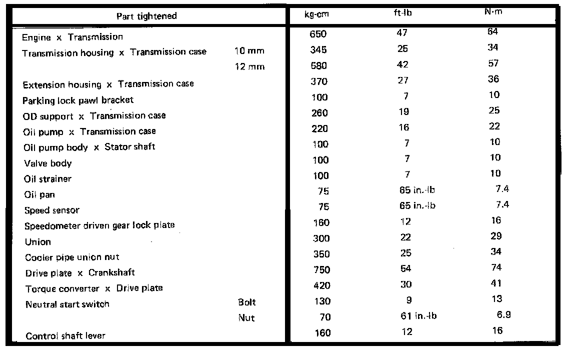 A340E 3-spd O/D A/T, Transmission Torque:
