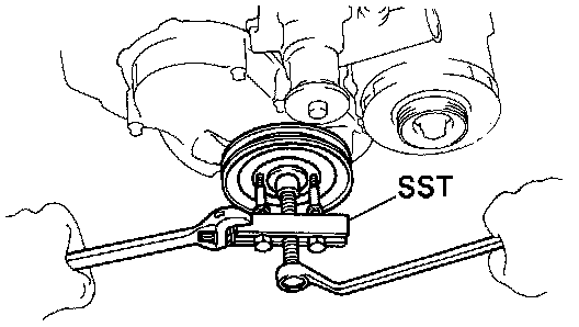 5. Using SST (09213-31021), remove the crankshaft pulley.