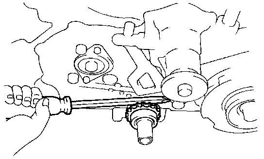 11. Remove the crankshaft sprocket using a screwdriver. If the crankshaft sprocket can not be removed with a screwdriver, use SST (09213-36020).