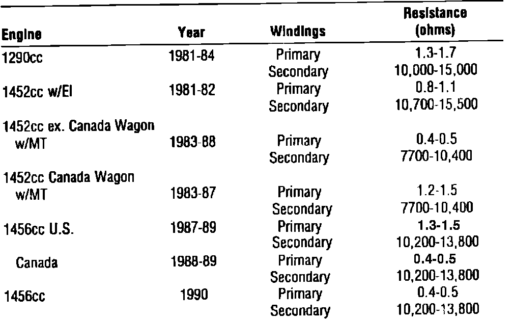 Fig. 9 Ignition Coil Specifications: