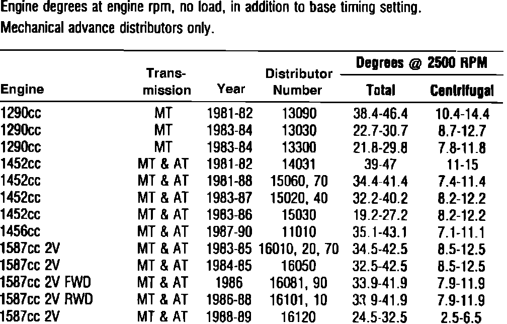 Fig. 19 Distributor Timing Advance Specifications: