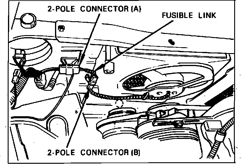 1. Check continuity of fusible link (A), Fig. 6. If defective, replace.