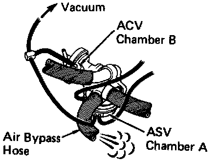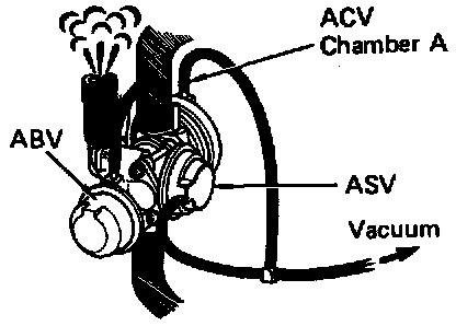 8. Apply vacuum directly to air control valve chamber "A" and air switching valve.