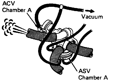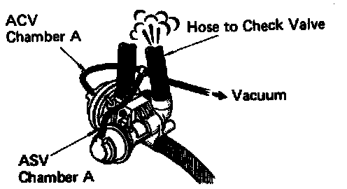 7. Apply vacuum directly to air control valve chamber "A" and air switching valve chamber "A".
