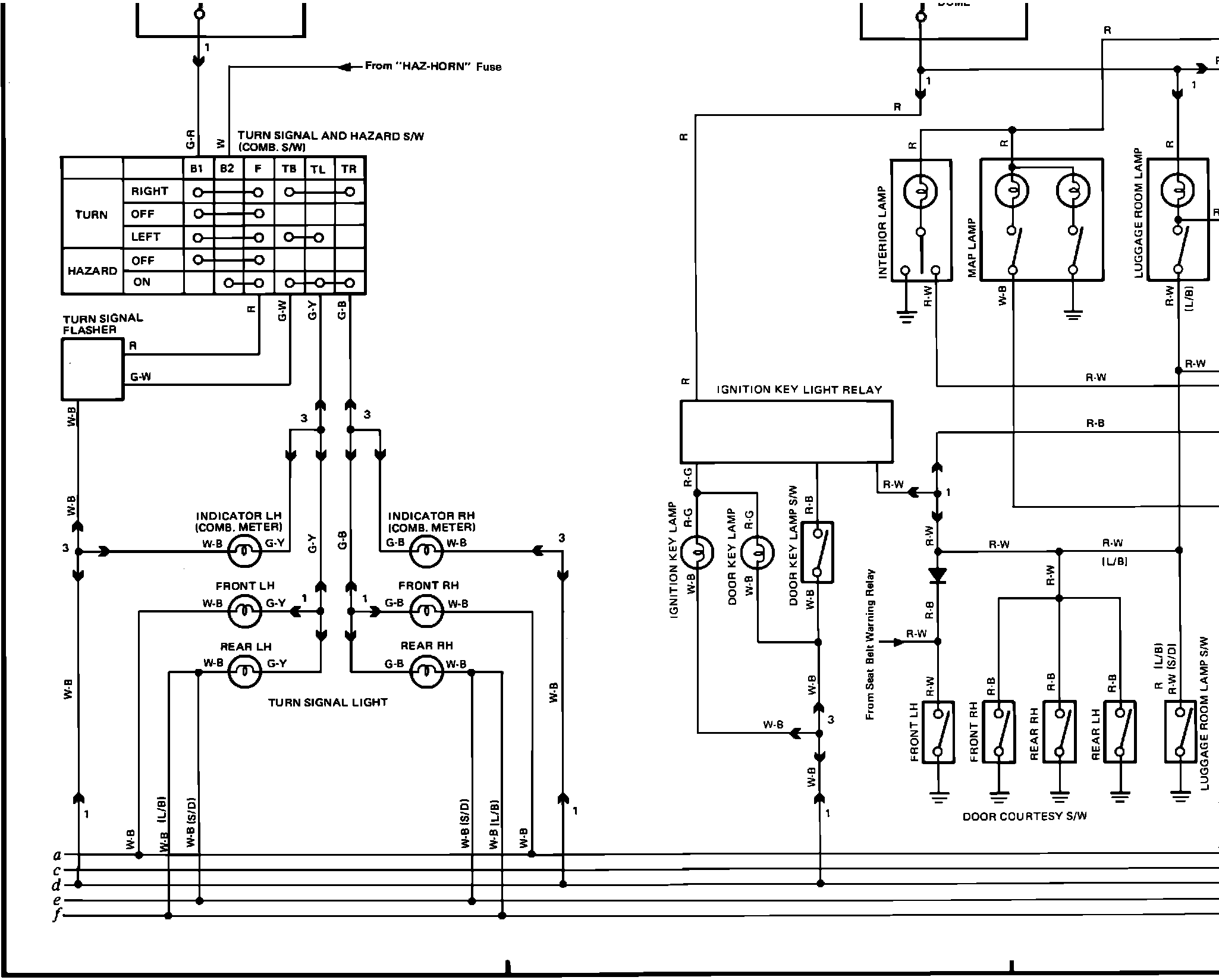 �݅���,�@8�B�qL��]�Fig. 6d Turn Signal, Hazard, Interior Lighting, Clock, Cigar Lighter, Rear View Mirror, Antenna Motor, Radio, Diesel Power Supply, Starting System, and Glow Plug System Wiring Diagram: