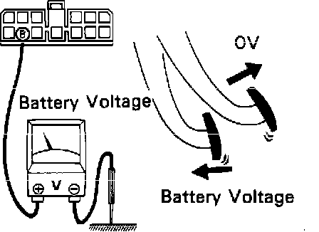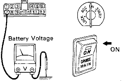 1. Turn ignition "ON." Measure voltage between terminal 7 and ground with main switch "ON."