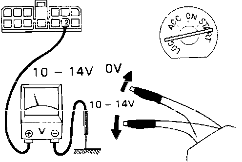 3. Start engine. Measure voltage between terminal 12 and ground.