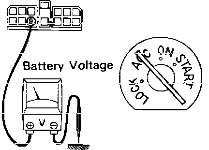 5. Turn ignition "OFF." Measure voltage between terminal 9 and ground.