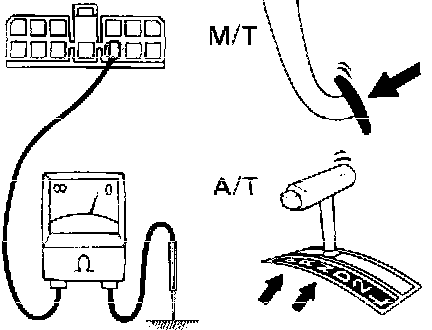 12. There should be continuity with clutch pedal depressed or shift lever in "P" or "N."