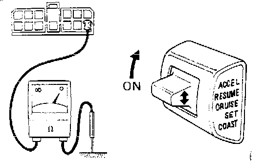 18. Check continuity between terminal 13 and ground with control switch set at "RESUME." Meter should show continuity.