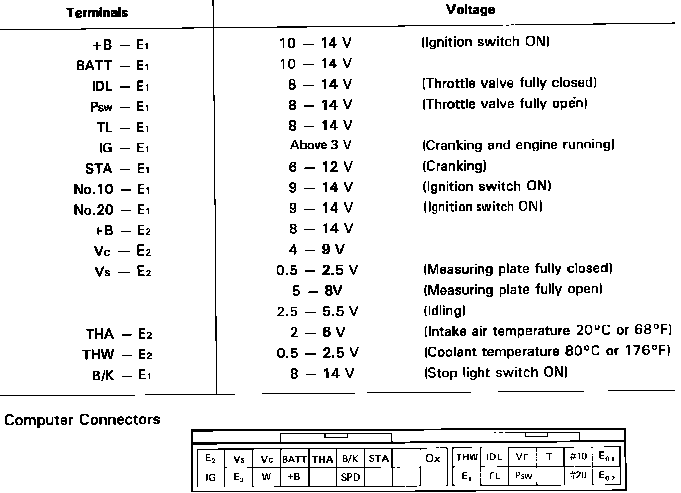 The following procedure allows separate inspection of each EFI circuit. This test is meant to be performed in conjunction with the troubleshooting, self diagnostic and component test procedures, and allows system wiring harnesses to be checked from the EFI computer connector.