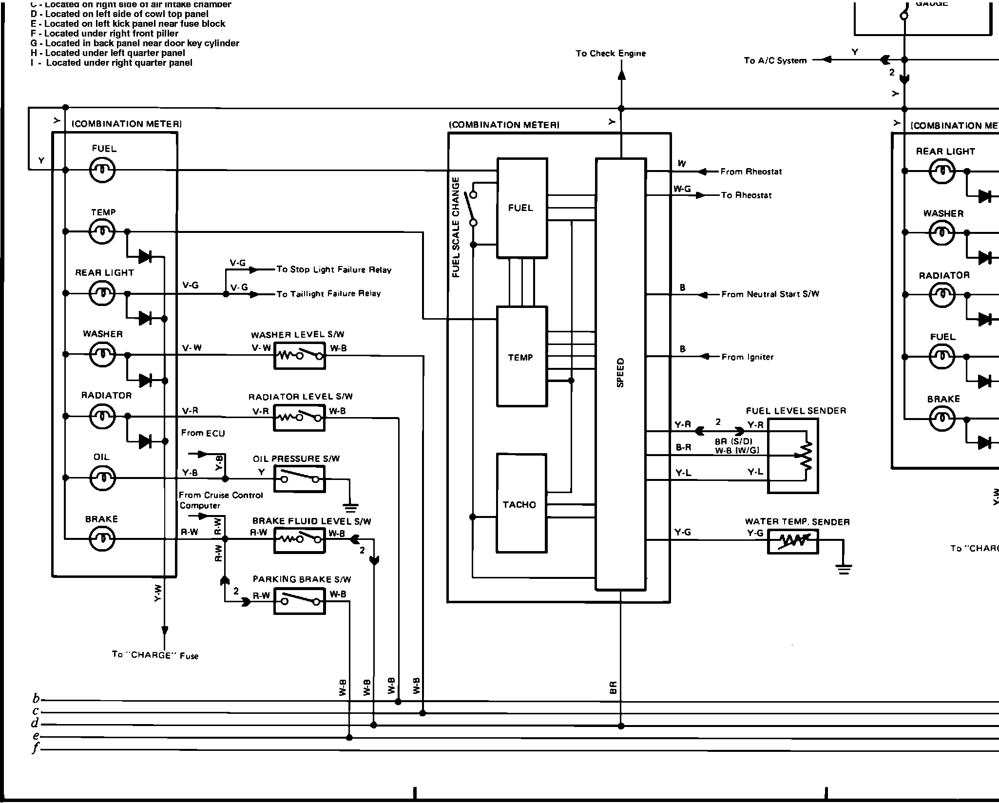 t�( )S4);)}G)K)�T)Fig. 27b Combination Meter, ECT System, Back-Up Lights, Seat Belt, and Rear Defogger Wiring Diagram: