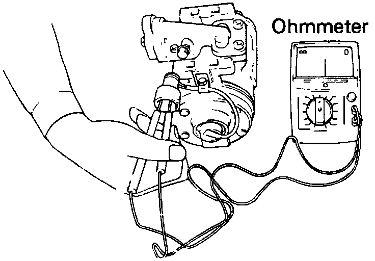 1. Unplug electrical connector to revolution sensor and measure resistance across sensor terminals.