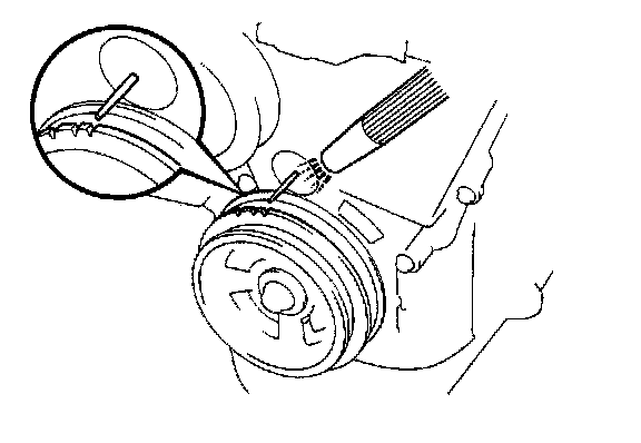 4. If necessary, loosen the distributor bolt and turn the distributor to align the marks. Recheck timing after tightening down the distributor hold down bolt to 20Nm (14 ft.lbs).